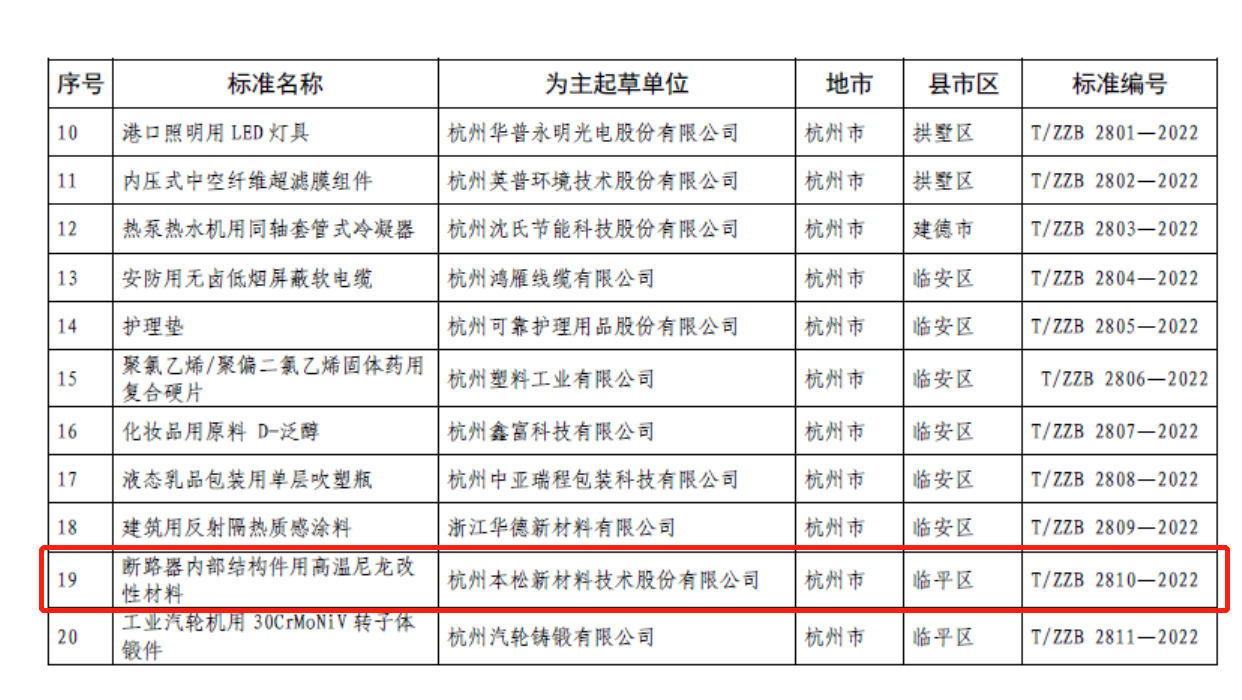 Finally, BOSOM ushered in the first main drafting group standard, drafted by BOSOM new materials main "high temperature nylon modified material for circuit breaker internal structural parts" standard, under the guidance of Chint, Delxi and other head customers and industry experts, under the support of the industry brother units, has been approved by Zhejiang Brand Construction Association as the "logo" group standard, The code is T/ZZB 2810-2022 and will be implemented from December 31, 2022.