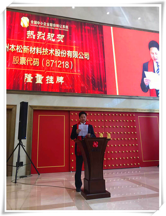 本松新材掛牌,對(duì)公司全體員工是巨大的鼓舞和激勵(lì)。未來(lái)本松將繼續(xù)秉持“奮斗者文化”,以客戶為中心,為客戶創(chuàng)造價(jià)值,向全球一流企業(yè)學(xué)習(xí),聚焦于行業(yè)和產(chǎn)品。爭(zhēng)取從資本的“兒童”長(zhǎng)成“少年”,在2020年銷售額突破十個(gè)億。