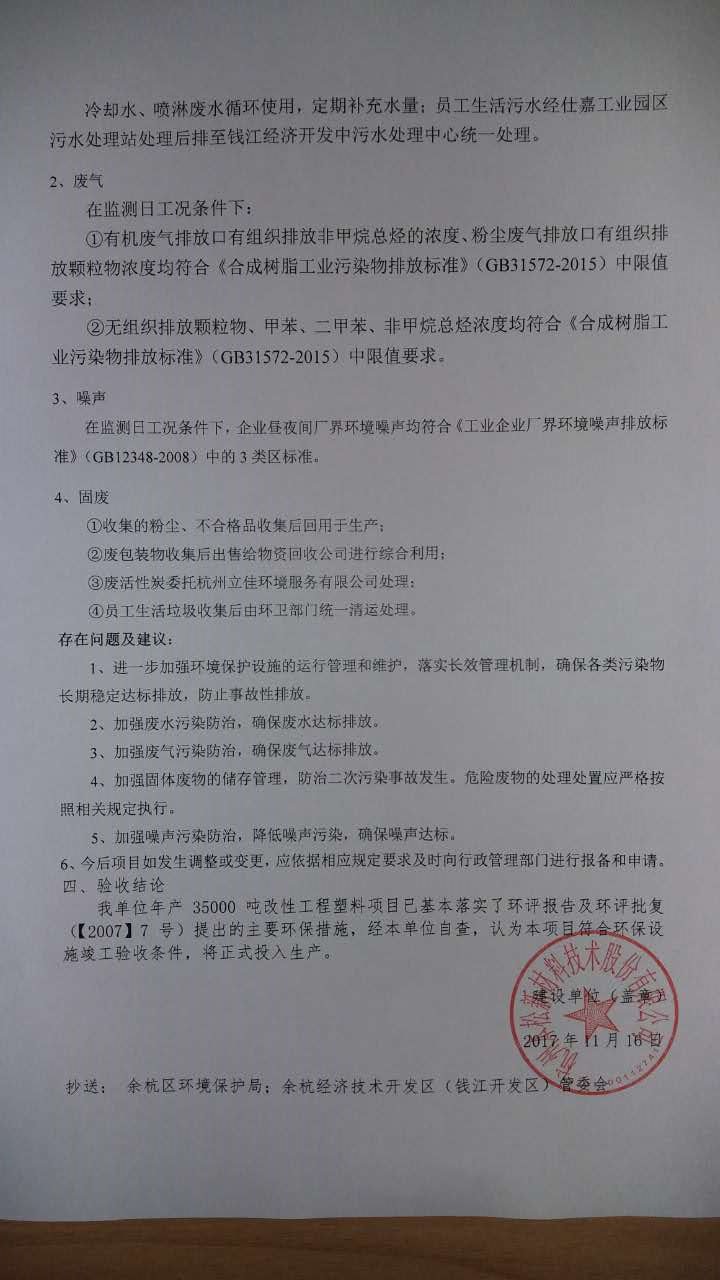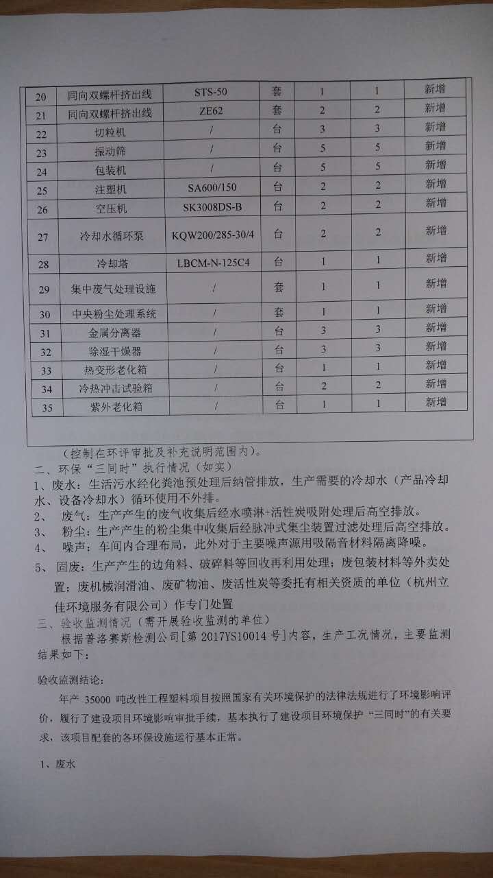關(guān)于我單位年產(chǎn)35000噸改性工程塑料項目的環(huán)境保護設(shè)施竣工驗收意見