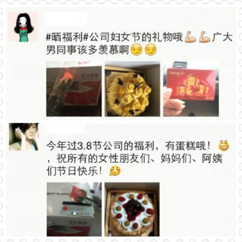 每年三八節(jié),公司都會給女員工發(fā)福利,但是今年的鮮花和蛋糕可謂是別出心裁,讓女同胞們著實(shí)驚喜了一番,很多同事紛紛在微信上曬起了“小確幸”。